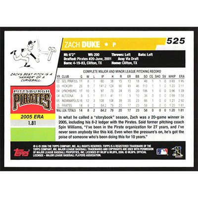 This is a 2006 Topps Zach Duke baseball card. The card is #525 and pictures show condition.
