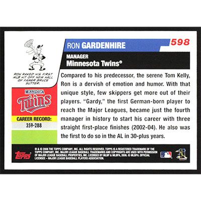 This is a 2006 Topps Ron Gardenhire baseball card. The card is #598 and pictures show condition.