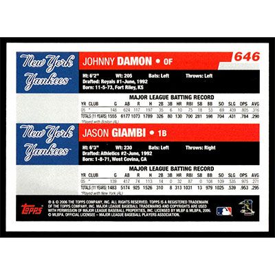 This is a 2006 Topps Johnny Damon/Jason Giambi Bronx Zoo baseball card. The card is #646 and pictures show condition.