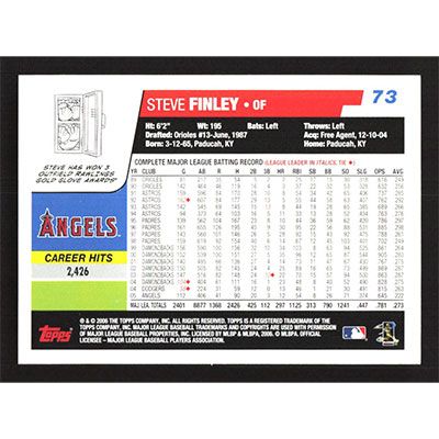 This is a 2006 Topps Steve Finley baseball card. The card is #73 and pictures show condition.