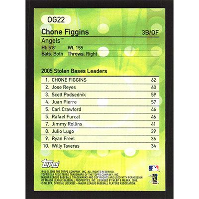 This is a 2006 Topps Own the Game Chone Figgins baseball card. The card is #OG22 and pictures show condition.