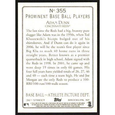This is a 2006 Topps Turkey Red Adam Dunn baseball card. The card is #355 and pictures show condition.