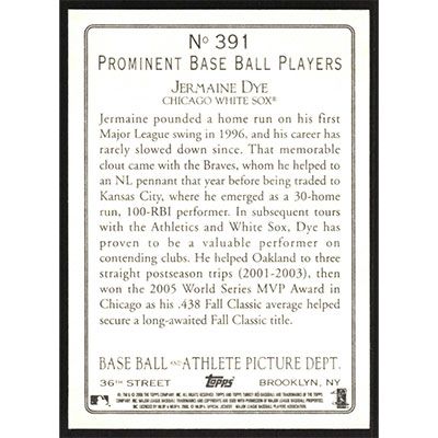 This is a 2006 Topps Turkey Red Jermaine Dye baseball card. The card is #391 and pictures show condition.