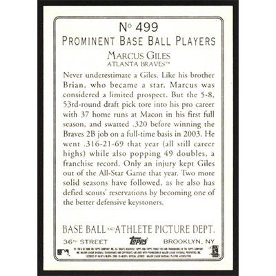 This is a 2006 Topps Turkey Red Marcus Giles baseball card. The card is #499 and pictures show condition.