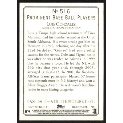 This is a 2006 Topps Turkey Red Luis Gonzalez baseball card. The card is #516 and pictures show condition.