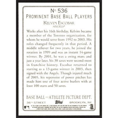 This is a 2006 Topps Turkey Red Kelvim Escobar baseball card. The card is #536 and pictures show condition.