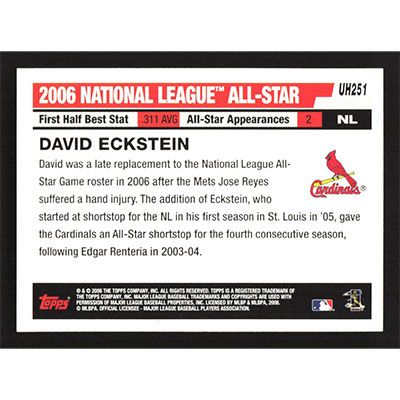 This is a 2006 Topps Update David Eckstein All-Star baseball card. The card is #UH251 and pictures show condition.