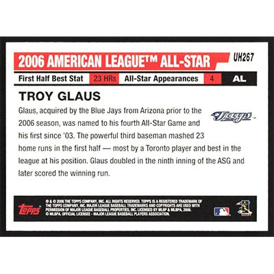 This is a 2006 Topps Update Troy Glaus All-Star baseball card. The card is #UH267 and pictures show condition.