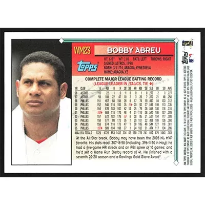 This is a 2006 Topps Walmart Bobby Abreu 1994 baseball card. The card is #WM23 and pictures show condition.