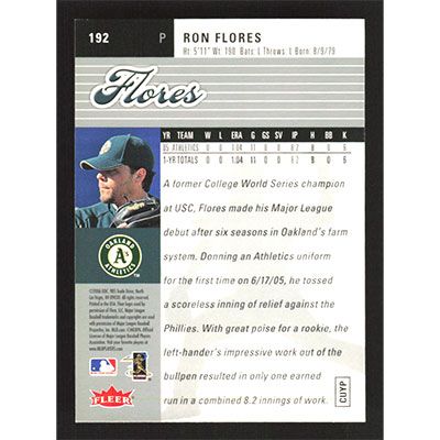 This is a 2006 Ultra Ron Flores baseball card. The card is #192 and pictures show condition.