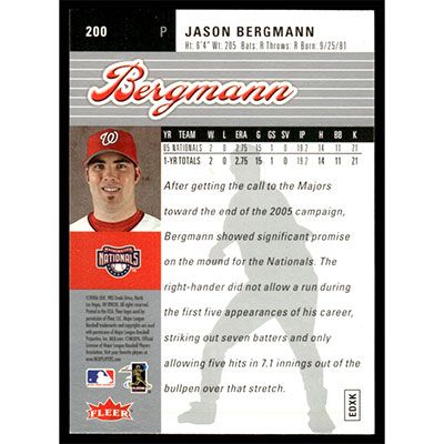 This is a 2006 Ultra Jason Bergmann baseball card. The card is #200 and pictures show condition.