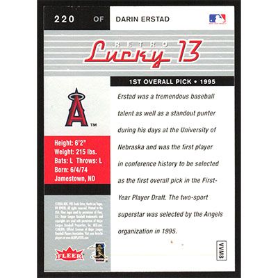 This is a 2006 Ultra Darin Erstad Retro Lucky 13 baseball card. The card is #220 and pictures show condition.