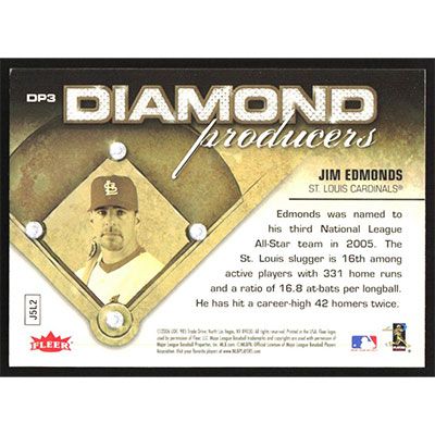 This is a 2006 Ultra Diamond Producers Jim Edmonds baseball card. The card is #DP3 and pictures show condition.