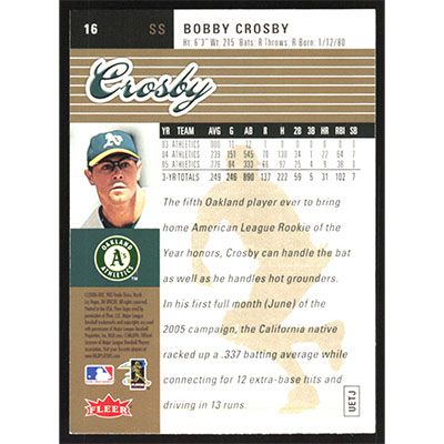 This is a 2006 Ultra Gold Medallion Bobby Crosby baseball card. The card is #16 and pictures show condition.