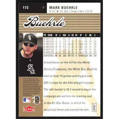 This is a 2006 Ultra Gold Medallion Mark Buehrle baseball card. The card is #172 and pictures show condition.