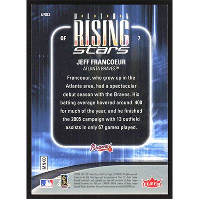 This is a 2006 Ultra Rising Stars Jeff Francoeur baseball card. The card is #URS3 and pictures show condition.