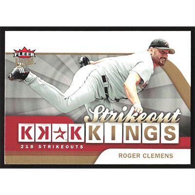 This is a 2006 Ultra Strikeout Kings Roger Clemens baseball card. The card is #SOK1 and pictures show condition.