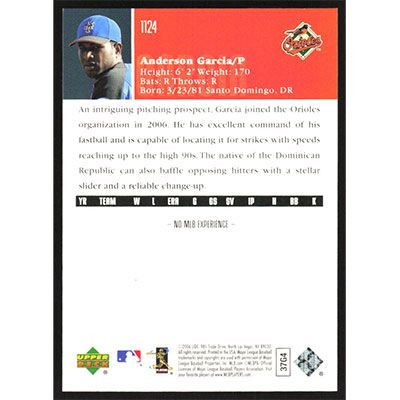 This is a 2006 Upper Deck Anderson Garcia baseball card. The card is #1124 and pictures show condition.