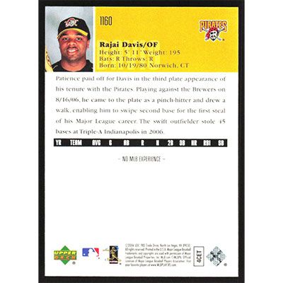 This is a 2006 Upper Deck Rajai Davis baseball card. The card is #1160 and pictures show condition.
