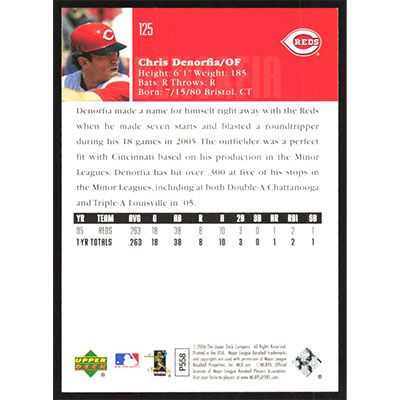 This is a 2006 Upper Deck Chris Denorfia baseball card. The card is #125 and pictures show condition.
