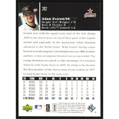 This is a 2006 Upper Deck Adam Everett baseball card. The card is #202 and pictures show condition.
