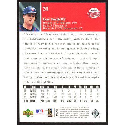 This is a 2006 Upper Deck Lew Ford baseball card. The card is #279 and pictures show condition.
