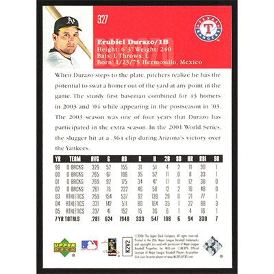 This is a 2006 Upper Deck Erubiel Durazo baseball card. The card is #327 and pictures show condition.