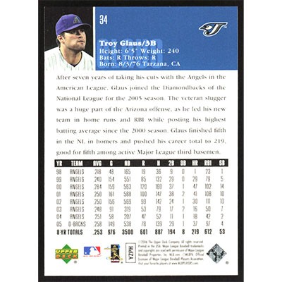 This is a 2006 Upper Deck Troy Glaus baseball card. The card is #34 and pictures show condition.