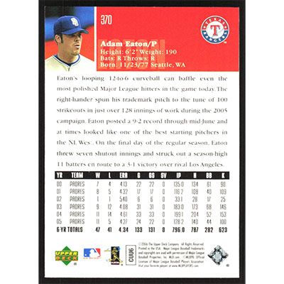 This is a 2006 Upper Deck Adam Eaton baseball card. The card is #370 and pictures show condition.