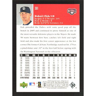 This is a 2006 Upper Deck Robert Fick baseball card. The card is #381 and pictures show condition.