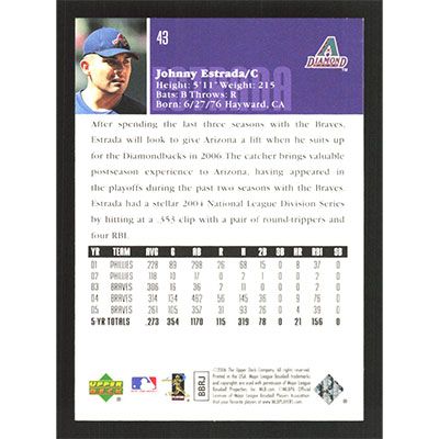 This is a 2006 Upper Deck Johnny Estrada baseball card. The card is #43 and pictures show condition.
