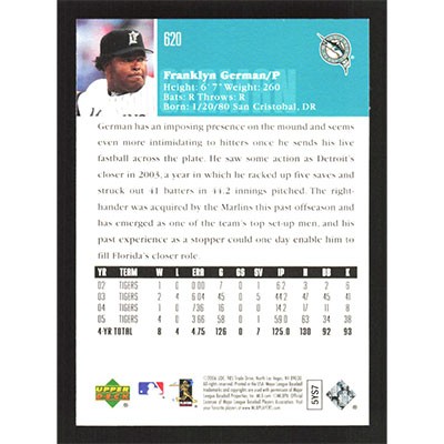 This is a 2006 Upper Deck Franklyn German baseball card. The card is #620 and pictures show condition.