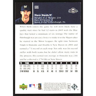 This is a 2006 Upper Deck Dave Bush baseball card. The card is #686 and pictures show condition.