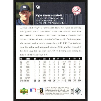 This is a 2006 Upper Deck Kyle Farnsworth baseball card. The card is #720 and pictures show condition.