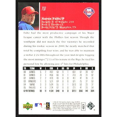 This is a 2006 Upper Deck Aaron Fultz baseball card. The card is #737 and pictures show condition.