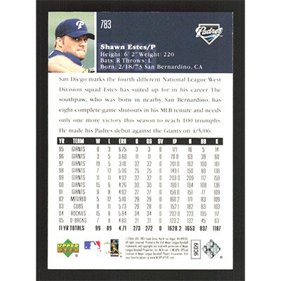 This is a 2006 Upper Deck Shawn Estes baseball card. The card is #783 and pictures show condition.