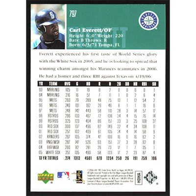 This is a 2006 Upper Deck Carl Everett baseball card. The card is #797 and pictures show condition.