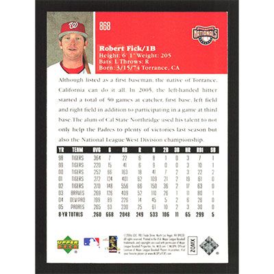 This is a 2006 Upper Deck Robert Fick baseball card. The card is #868 and pictures show condition.