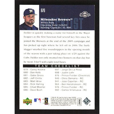 This is a 2006 Upper Deck Prince Fielder Team Checklist baseball card. The card is #876 and pictures show condition.