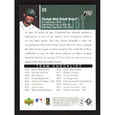 This is a 2006 Upper Deck Carl Crawford Team Checklsit baseball card. The card is #879 and pictures show condition.