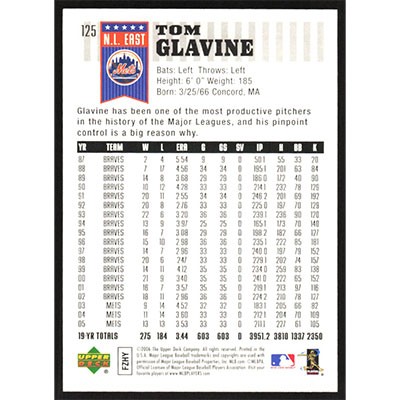 This is a 2006 Upper Deck First Pitch Tom Glavine baseball card. The card is #125 and pictures show condition.