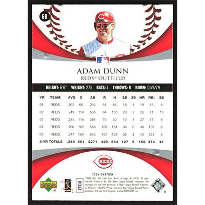 This is a 2006 Upper Deck Ovation Adam Dunn baseball card. The card is #68 and pictures show condition.