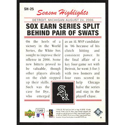 This is a 2006 Upper Deck Season Highlights Jermaine Dye baseball card. The card is #SH-25 and pictures show condition.