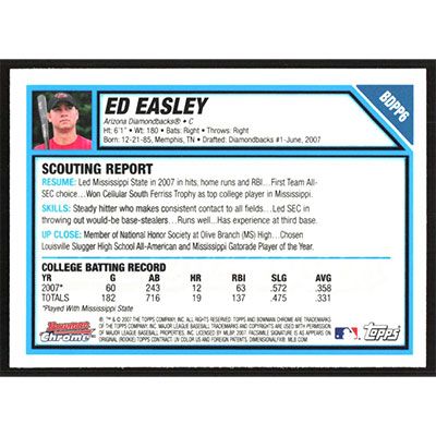 This is a 2007 Bowman Chrome Draft Draft Picks Ed Easley baseball card. The card is #BDPP6 and pictures show condition.