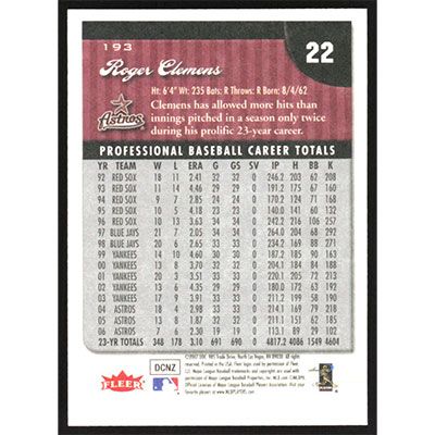 This is a 2007 Fleer Roger Clemens baseball card. The card is #193 and pictures show condition.