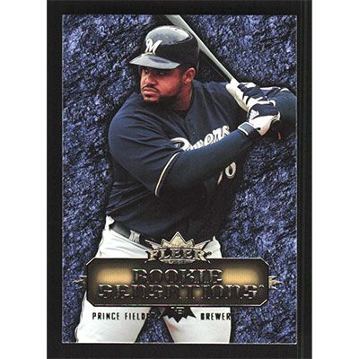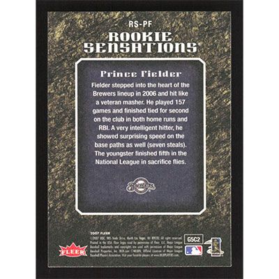 This is a 2007 Fleer Rookie Sensations Prince Fielder baseball card. The card is #RS-PF and pictures show condition.