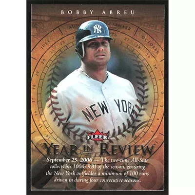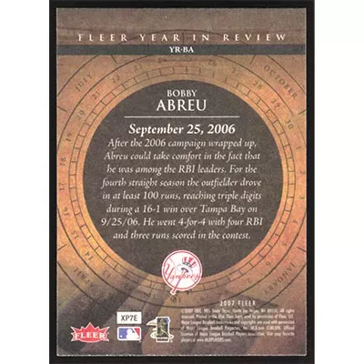 This is a 2007 Fleer Year in Review Bobby Abreu baseball card. The card is #YR-BA and pictures show condition.