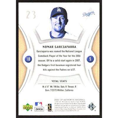 This is a 2007 SP Authentic Nomar Garciaparra baseball card. The card is #23 and pictures show condition.