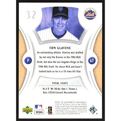 This is a 2007 SP Authentic Tom Glavine baseball card. The card is #32 and pictures show condition.