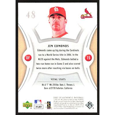 This is a 2007 SP Authentic Jim Edmonds baseball card. The card is #48 and pictures show condition.
